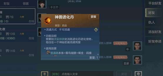 神兽进化丹:北冥原神(通过大北冥鱼获得)岳龟元神(打巨兽岳龟获得)鲲蛟元神(打巨兽鲲获得)