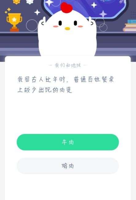 问题:我国古人过年时,普通百姓餐桌上较少出现的肉是