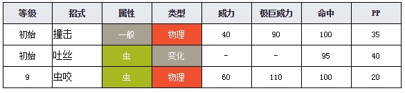 进化链为:绿毛虫→铁甲蛹(7级时进化而成)→巴大蝶(10级时进化而成)