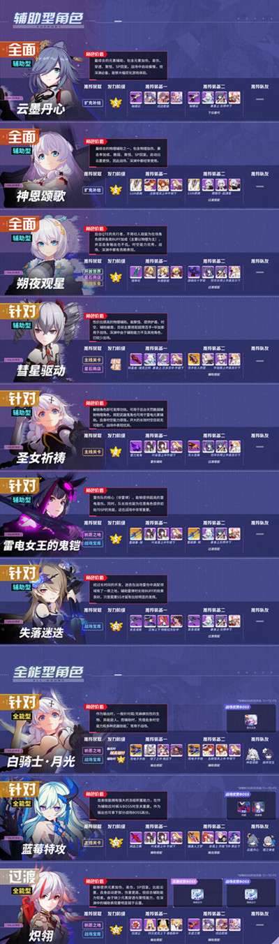 辅助型及全能型角色推荐强度排行榜: