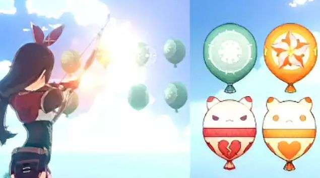 到达指定地点后与庆典看板对话开始挑战,四周出现大量气球,普攻或重击可击破,风花球(20分)、缤纷球(100分)、喝彩球(爆炸击碎范围内气球)、心碎球(倒扣50分)。挑战加入了连击Combo,短期连续的正确击破能够提高分数获取倍率。可单人也可联机,分数各论各的。总分数计算后达到对应档位可获得相应的奖励,原石、摩拉、经验书、庆典巡回券(用于活动商店兑换智识之冕、天赋书)。