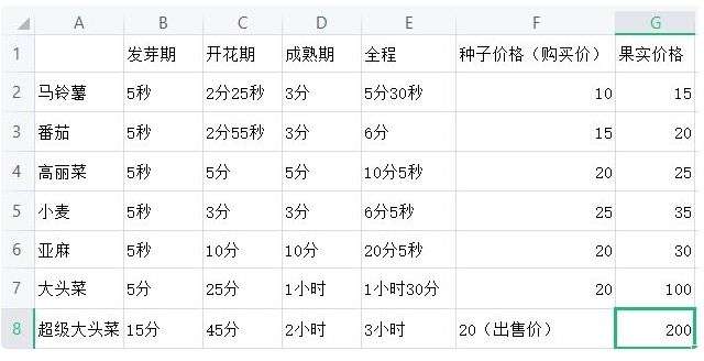 但是如果是对于第一天收益最高没有那么高的兴趣,只想每天种种菜,钓钓鱼,干自己想干的事,那就要对于每一种植物的收益率有一个清楚的认识了。