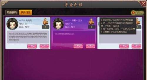 每天还可给寻爱榜上一位心仪玩家点赞,大胆释放你的魅力吧!