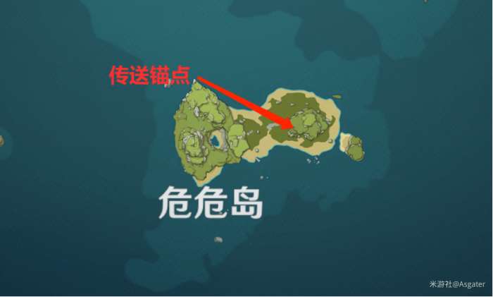 解锁危危岛所在传送锚点后传送至该位置,按照下图所标记方向前进;