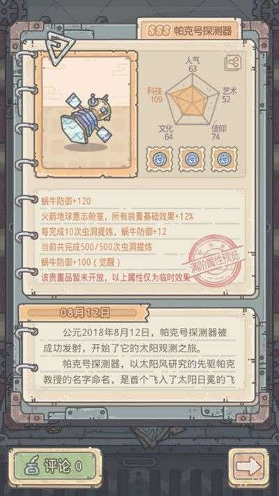 每完成10次虫洞提炼,蜗牛防御+12