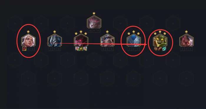 这套阵容玩法非常很简单,就是赌出3星的努努和3星的猪妹。在当前版本努努是冷门英雄,追3星的并不是特别多,因此还是比较容易追3的。