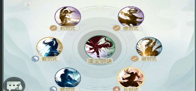 2、目前一共有六大剑诀可供我们选择,分别是崩山(外攻)、凌尘(内攻)、太玄(外防)、太虚(内防)、两仪(双攻)与归元(双防)。凌尘推荐问酒、莫思、暗影使用