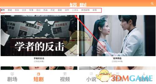 2、选择“短剧”标签即可看到各类短剧分类,如言情、悬疑、搞笑等,方便用户快速找到喜欢的类型。