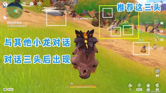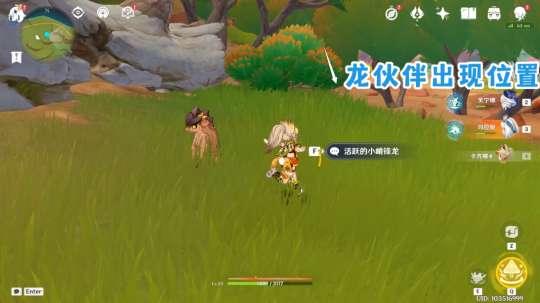 之后把他身边两头只需要对话的龙对话完,龙伙伴就直接在身后草丛出现了