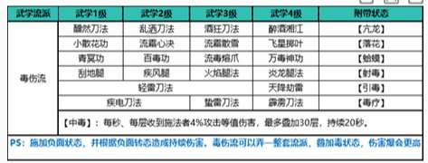 2、一般都是默认用该流派的最高阶武学,没有的武学可以用低阶的代替。