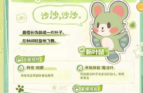 爆发速推队可以选择小火喵+新叶鼠+小火喵,比较适合打克制属性敌人,又或者是迅速的清理。在开局时可以先进入到热身的阶段,然后更快的提升状态,接着释放技能叠加高额的燃烧伤害。如果这一个阵容还并没有让大家满意,那不如就选择水母贝贝+新叶鼠+水母贝贝,有人可能会觉得,把这些宠物重复放在一起,是不是没有太多作用,其实就很适合高难度的副本,以及持久战。两只水母贝贝可以轮回的去放技能,不仅可以提升伤害,还可以躲避关键的技能攻击。