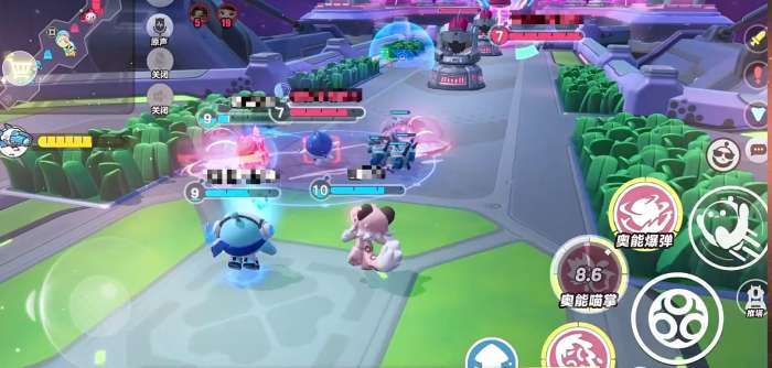二技能“奥能喵掌”为典型强控技能:在目标区域召唤双爪,延迟约0.8秒后向中心合拢,产生聚怪+击飞+眩晕三重效果,同时附加中等量级法术伤害,是开团、反打与保护后排的关键手段。