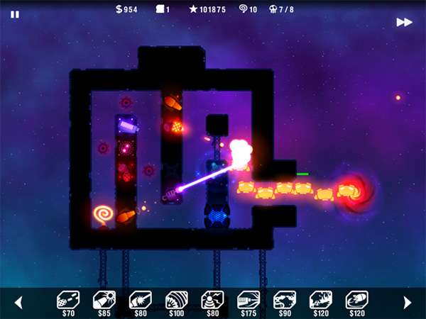 辐射塔防是一款以空间为主题的塔防手机游戏。场景设定在一个被无数外星人入侵的充满活力的宇宙中。数以百万计的外星人正在入侵你的家。你需要以自己的方式建造机器人技术,建造各种武器和陷阱,让入侵者来。游戏中的每一波怪物在被消灭后都会被暂停,这样玩家就有足够的时间建造、升级防御塔或调整路线。无论你死在哪个浪潮中,你都可以从这个浪潮中重新开始,而不是从头开始。这意味着,事实上,游戏的每一波都像一个检查站,你可以随意改变路线和防御塔。游戏场景设定在一个被无数外星人入侵的充满活力的宇宙中。用你自己的方式建造机器人技术,建造各种武器和陷阱,让入侵者来吧。