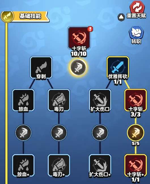 加点思路:共23点天赋点,优先解锁全部技能,再点满核心和基础技能