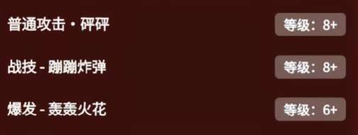 如果在轰轰火花持续期间内退场,会引发爆炸,造成555%攻击力的火元素范围伤害。