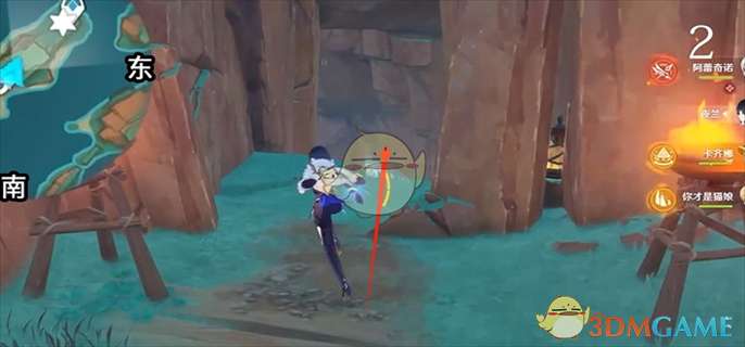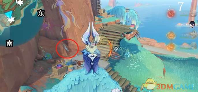 点击石盒后,小地图东北方向,需要沿着山体左侧走,达到木板位置处;