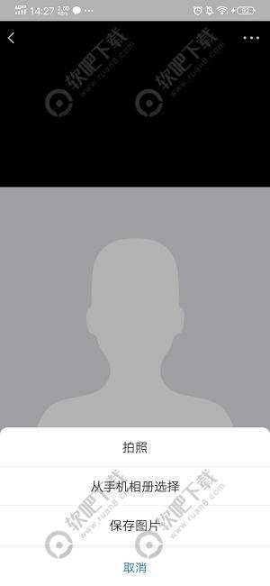 3、在头像更换界面,点击右上角【…】的选项,点击之后会在下方弹出三个选项,有拍照和手机相册选择两种方式更换头像,用户可以自己选择一个方式进行上传需要更换的头像;