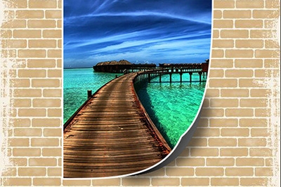 5、最后将图片放入到纸张中,并使用剪贴蒙板,再将纸张图层添加描边效果,一个纸张翘边效果的海报就完成了。