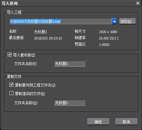 点击文件菜单,单击“导入序列”,在弹出的“导入序列”对话框中,点击浏览,找到原先的那个工程文件,之后再点击确定。