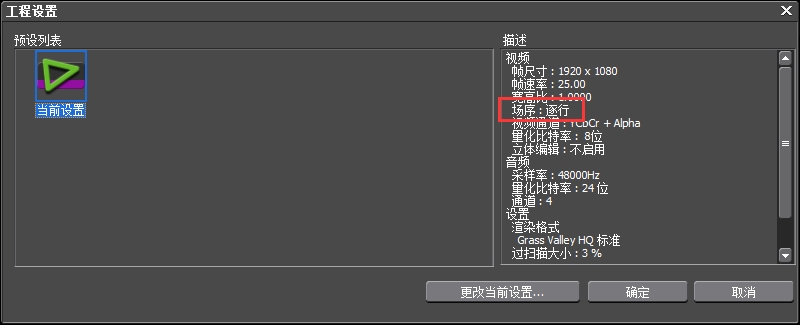 由于edius刻录光盘只支持隔行场序的,不支持逐行的,若工程设置中边场序是逐行的,那就刻录不了。因此,想刻录光盘,就需要将逐行更改为隔行,也就是上场优先。