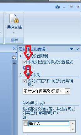 2、如图,点击“”保护文档——限制格式和编辑——去掉所有勾选“”基本能解决问题