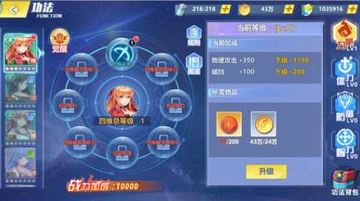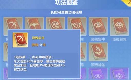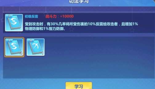 选择想要学习的功法后,可通过升级来达到属性的加强