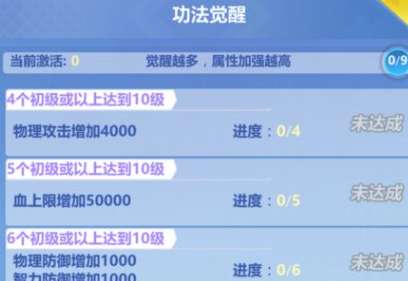 当前激活功法达到一定的数量,等级,增加的属性就越强大唷!