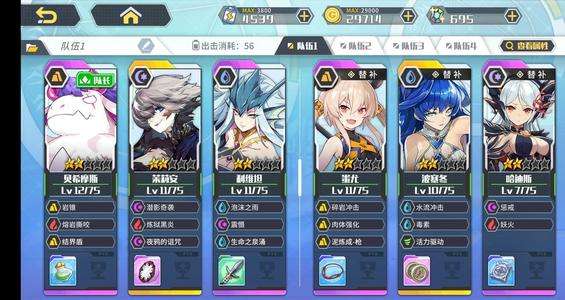 前期的经验石,金喵和紫喵全喂给你的这个队伍,不要担心,后期你会发现你的史莱喵和经验石溢出得超多。就这样一路打到5-4开殿堂。