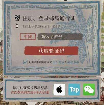 本次《江南百景图》注册账号会采用“椰岛通行证”。每个椰岛通行证需要实名制绑定手机号,并通过防沉迷认证。首次注册成功后可以将椰岛通行证绑定苹果、TapTap或微信账号等社交账户,之后即可进行快速登录。