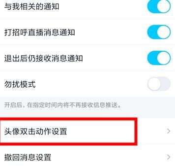 在消息通知的底部,我们找到双击头像动作设置,点击进入。