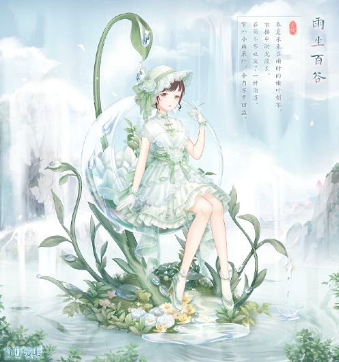 谷雨亭的代表套装为【雨生百谷】,大暑榭的代表套装为【竹萤消夏】。