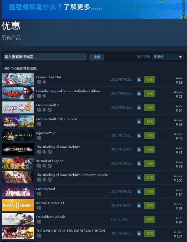 远程同乐功能的存在一定会加大各位对多人游戏的需求,体贴的G胖特意为大家准备了一次多人游戏大折扣,且还有一大批多人游戏即将在11月25日上线。