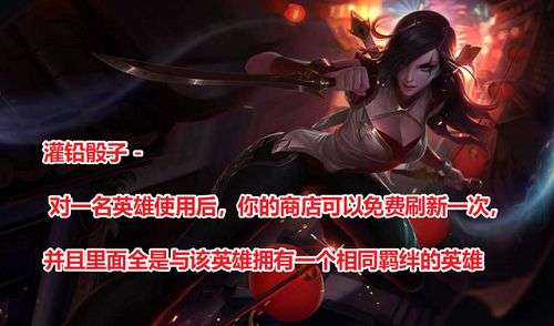 “灌铅骰子”,简单来说就是对某个英雄使用后,商店就会免费刷新一次。