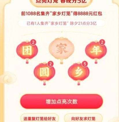 活动页面中点击【填写灯笼码】,进入填写灯笼码,输入他人分享的灯笼码,点击确认。