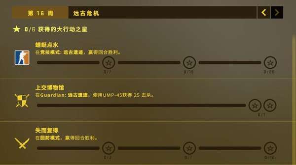 在守护模式:远古遗迹,使用UMP-45获得25个击杀。完成任务后可获得2颗大行动之星。