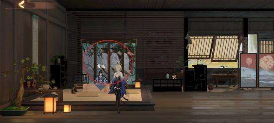 5.之后再去跟曹植互动,蘸取他面前的颜料后,他会叫我们帮忙修复中间和右边的屏风,修复的同时按照正常流程走,我们会获得3种可以制成颜料的素材石。(一开始获得的墨色只能画下图圈起来的两块位置)