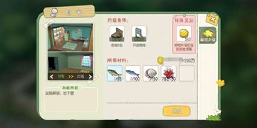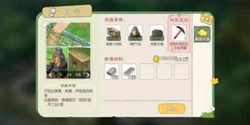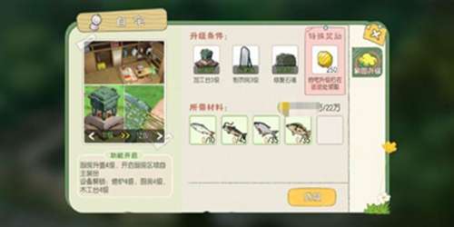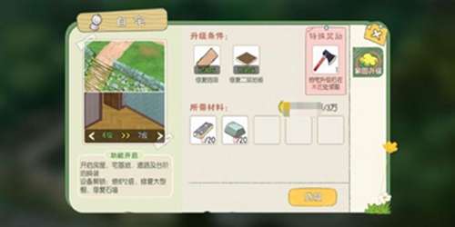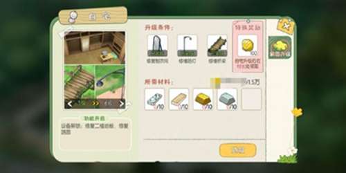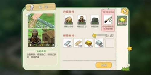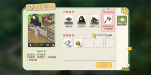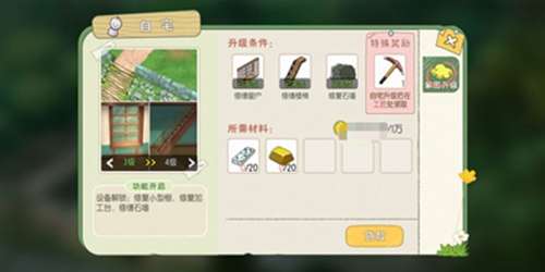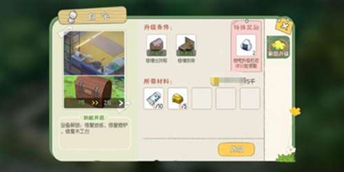 【升级条件】修缮出货箱(砂白木x5 金币100)、修缮厨房(砂白木x10 金币2000)