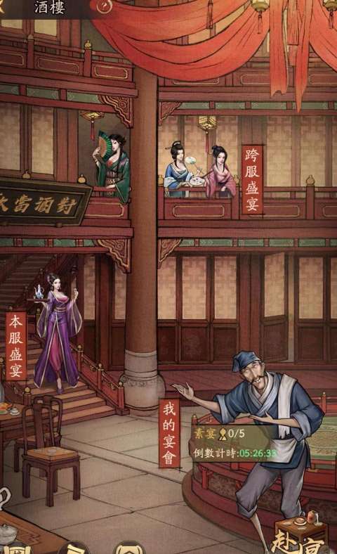 6.除了举办宴会,我们也可以赴宴,在酒楼里点击赴宴即可解锁赴宴玩法,点击可以查看全服盛宴以及亲友宴会;