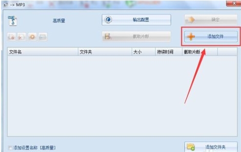 接着我们就在打开的页面里,点击“添加文件”,选中你要截取音频的文件打开:
