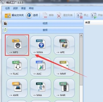 因为是截取音频,所以你本身是什么格式的音频,就点击音频栏目里对应的格式,比如这里mp3格式的歌曲,就点击mp3图标: