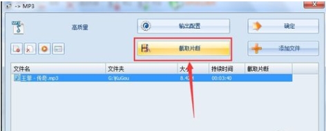 这时打开后会显示文件信息在刚才页面中,选中此文件后,就可以再点击“截取片段”来截取音频了: