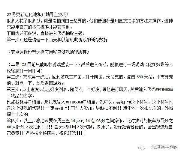为了各位道友,清词斥巨资购买了造化池单抽瓶子技巧,如图中技巧: