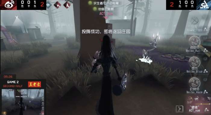 监管者Weibo战队——ban:前锋 机械师 佣兵 pick:Weibo_Ymm 红夫人