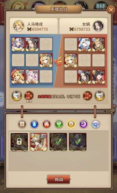 关卡挑战中的可选英雄和敌手英雄均由系统设定,无需另行培养,面对不同对手,需运用策略搭配制胜!