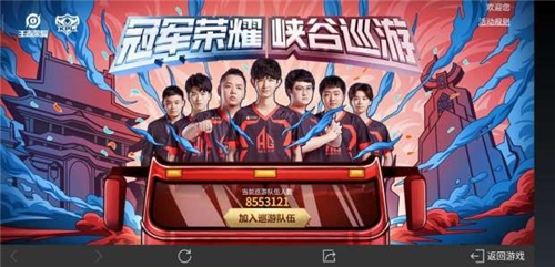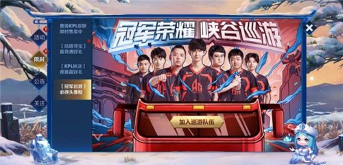 第一步:12月14日到12月20日期间,在游戏大厅点击【活动】-【限时】-【冠军巡游】,点击【加入巡游队伍】跳转对应界面。