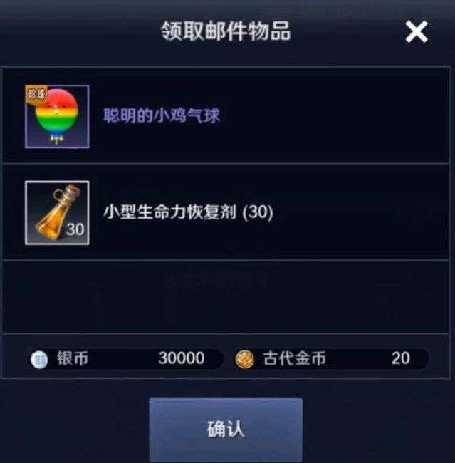 以上(5个)兑换内容:聪明的小鸡气球*1,古代金币*20,银币*30000,小型生命力恢复剂*30