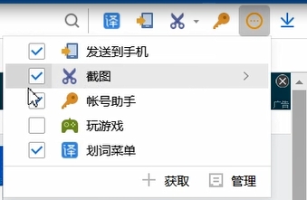 假如在右上角没有看到剪刀图标,点击这个三个点的图标,将截图功能勾选即可。