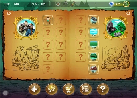 但是组合也是有一定的逻辑关系在内的,比如你拿生命和平原组合,就能的得出野兽、森林和人类。这些规律都需要你来一步一步找寻。但是也存在着一些令人匪夷所思的组合,这个时候就需要不断的试验了。