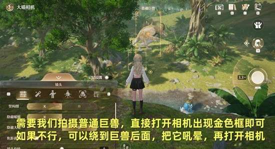 如果不行,可以绕到巨兽后面,把它吼晕后,打开相机拍照也可以;
