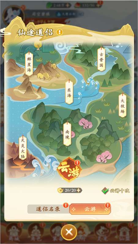 消耗精力进行云游,云游途中会随机偶遇道侣,增加好感度。